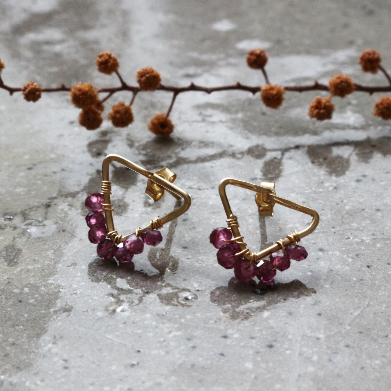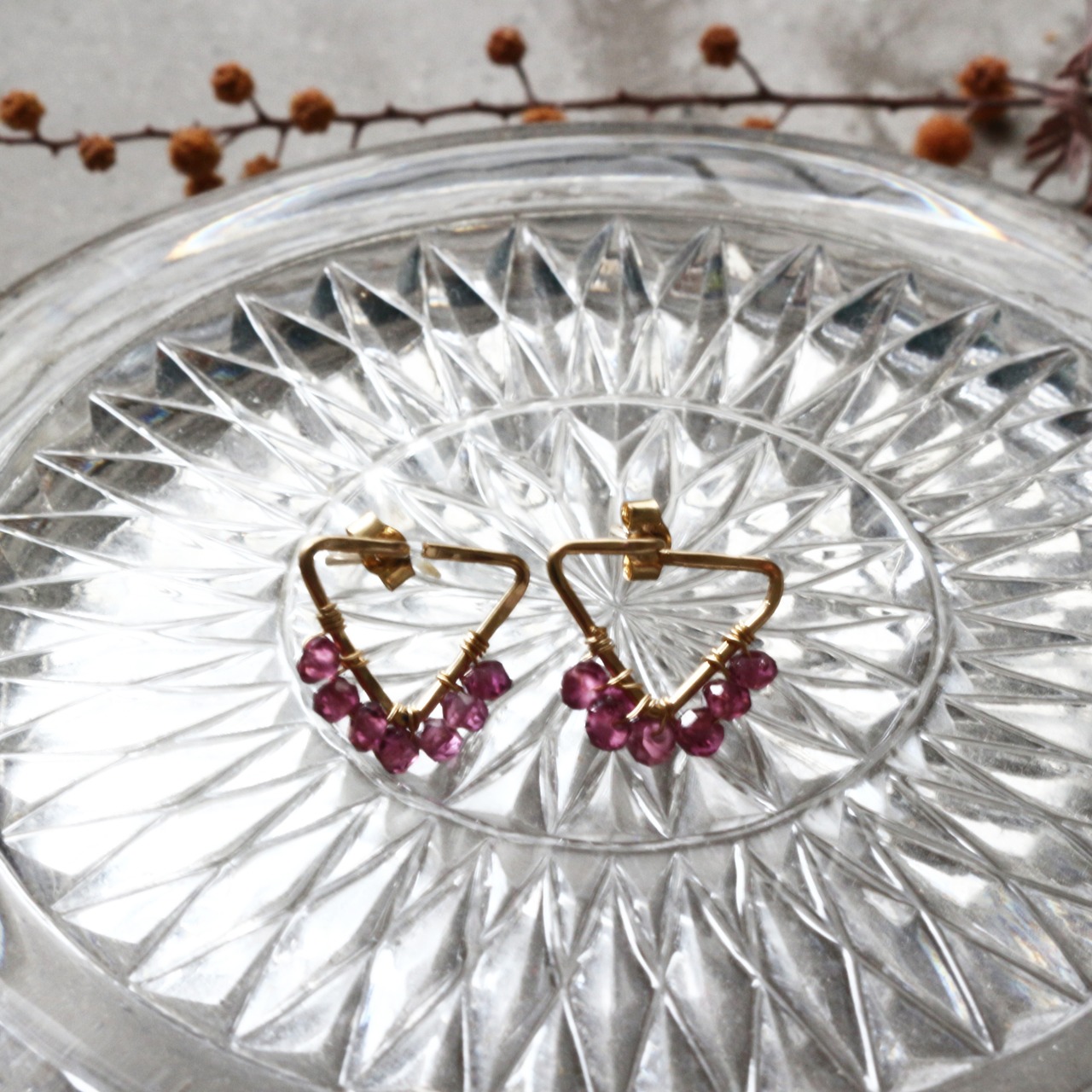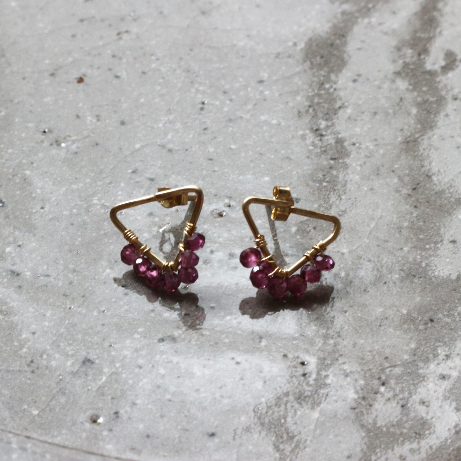 ーーーーーーーーーーーーーーーーーーーーーーーーーーーーーーーーーーーーーーーーーーーーーーーーーーーーーーーーーーーーーーーーーーーーーーーーーーーーK14gf K14GF ゴールドフィルド 天然石 ジュエリー アクセサリー ピアス フレーム トライアングル 三角 ハンドメイド ギフト 1月誕生石 ガーネット ロードライトガーネット ワイン色 ボルドー プチギフト デイリー フォーマル シンプル 小粒 エレガント シック 大人可愛い 華やか