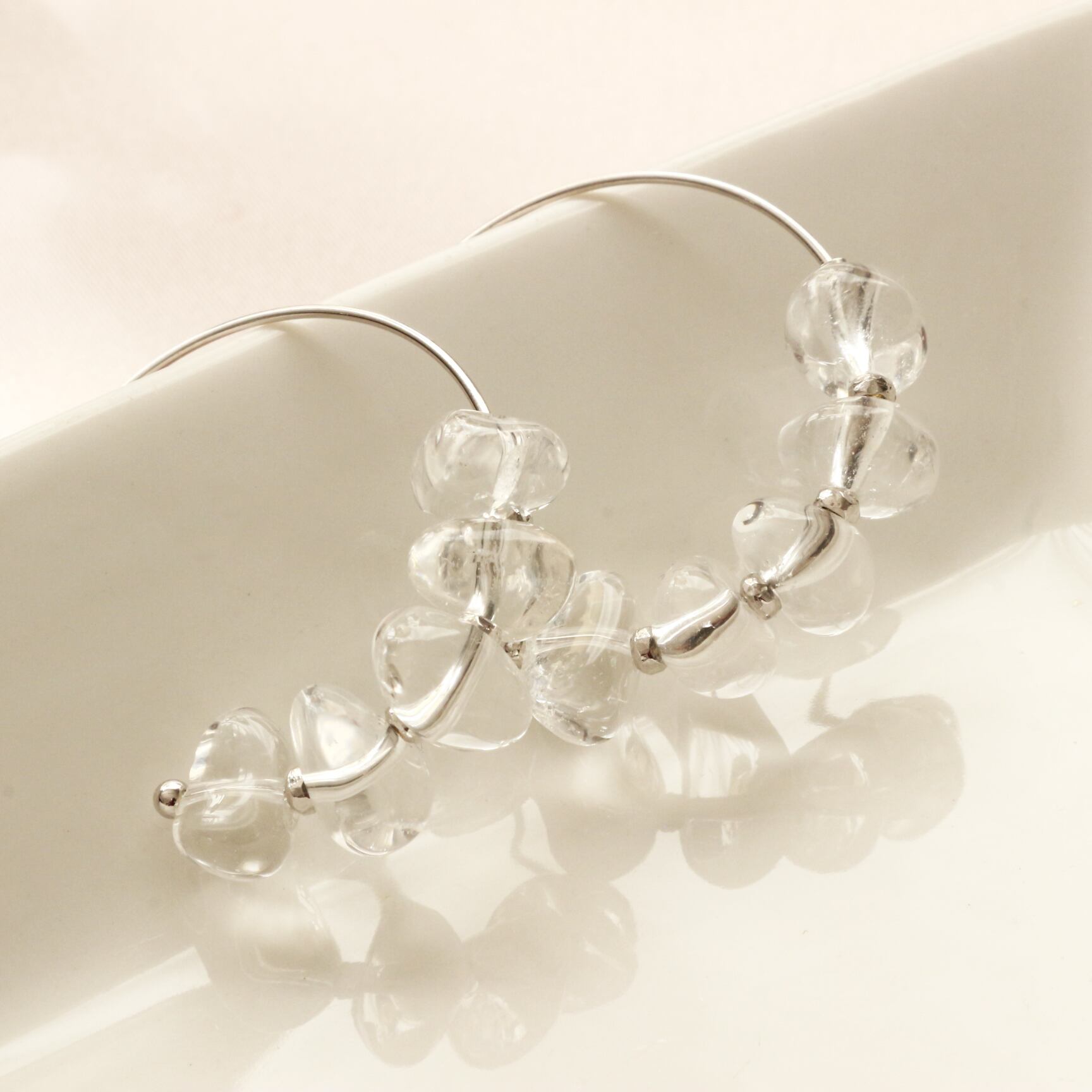 ーーーーーーーーーーーーーーーーーーーーーーーーーーーーーーーーーーーーーーーーーーーーーーーーーーーーーーーーーーーーーーーーーーーーーーーーーーー 天然石 ジュエリー アクセサリー ピアス ハンドメイド ギフト 水晶 クリスタル クリア 氷 透明 浄化 4月誕生石 フープ 大きめ さざれ SV SV925 シルバー ロジウム スタイリッシュ ナチュラル アクセント プチギフト デイリー
