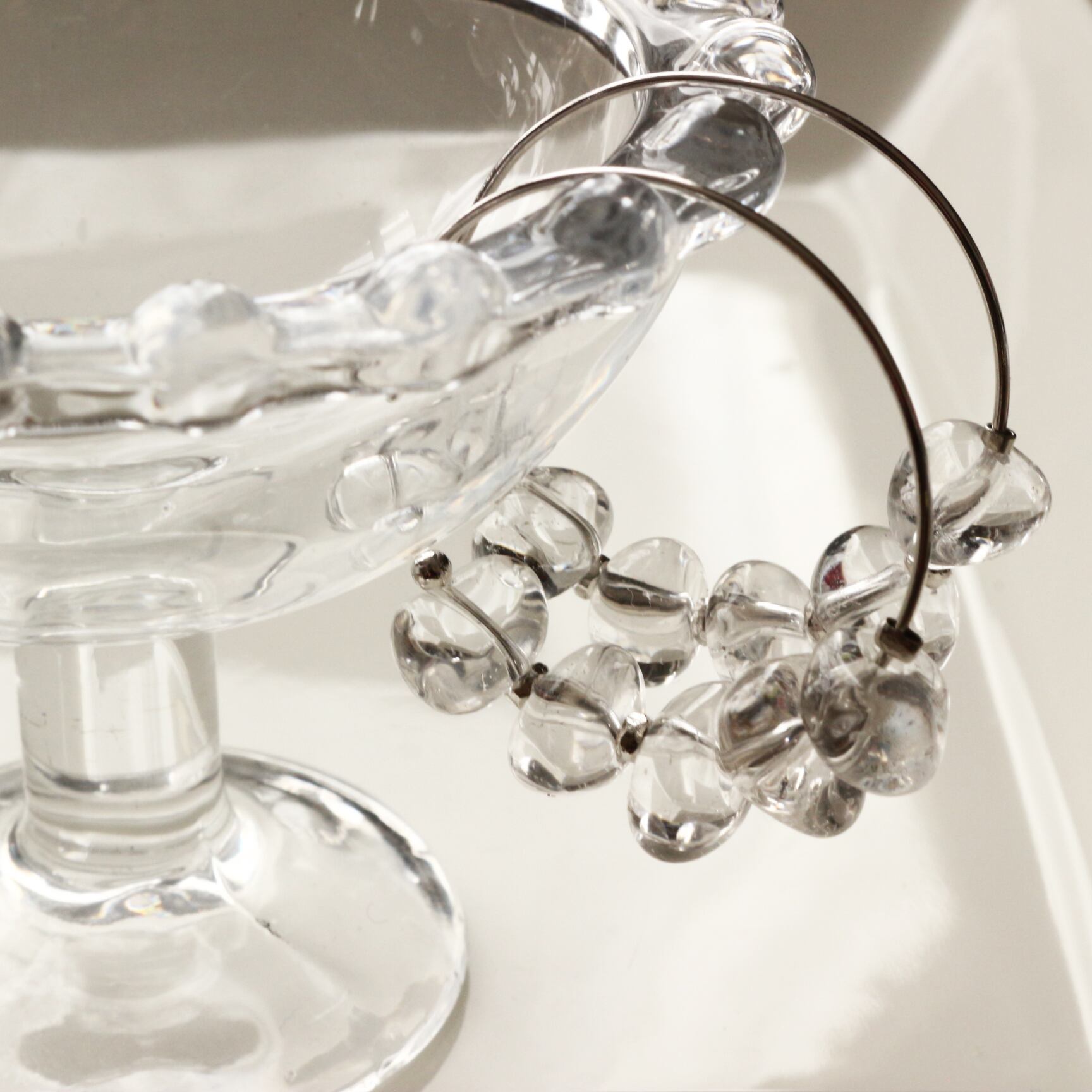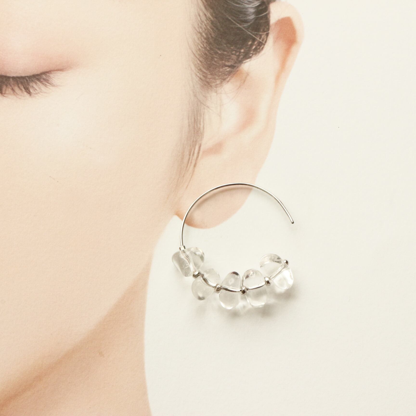 別名『クリスタル』"透きとおる氷"という意味の水晶、その名の通りとろける氷のようなフープピアスです。