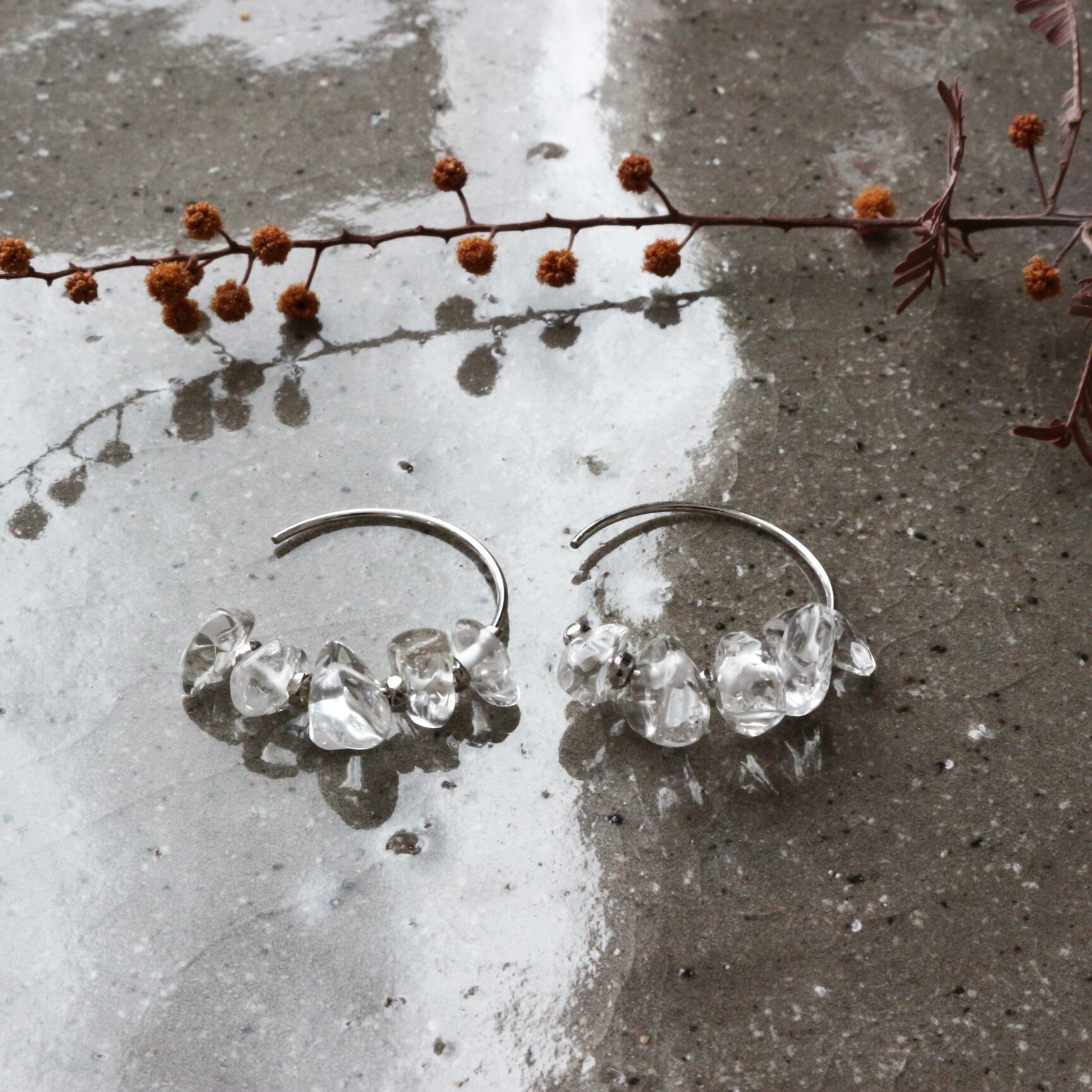 別名『クリスタル』"透きとおる氷"という意味の水晶、その名の通りとろける氷のようなフープピアスです。