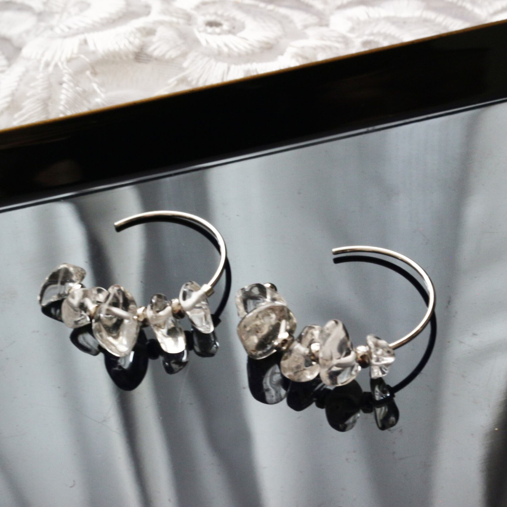 スタイリッシュなシルバーカラーと、クリアに輝く石を耳元でお楽しみいただけます様に☺︎