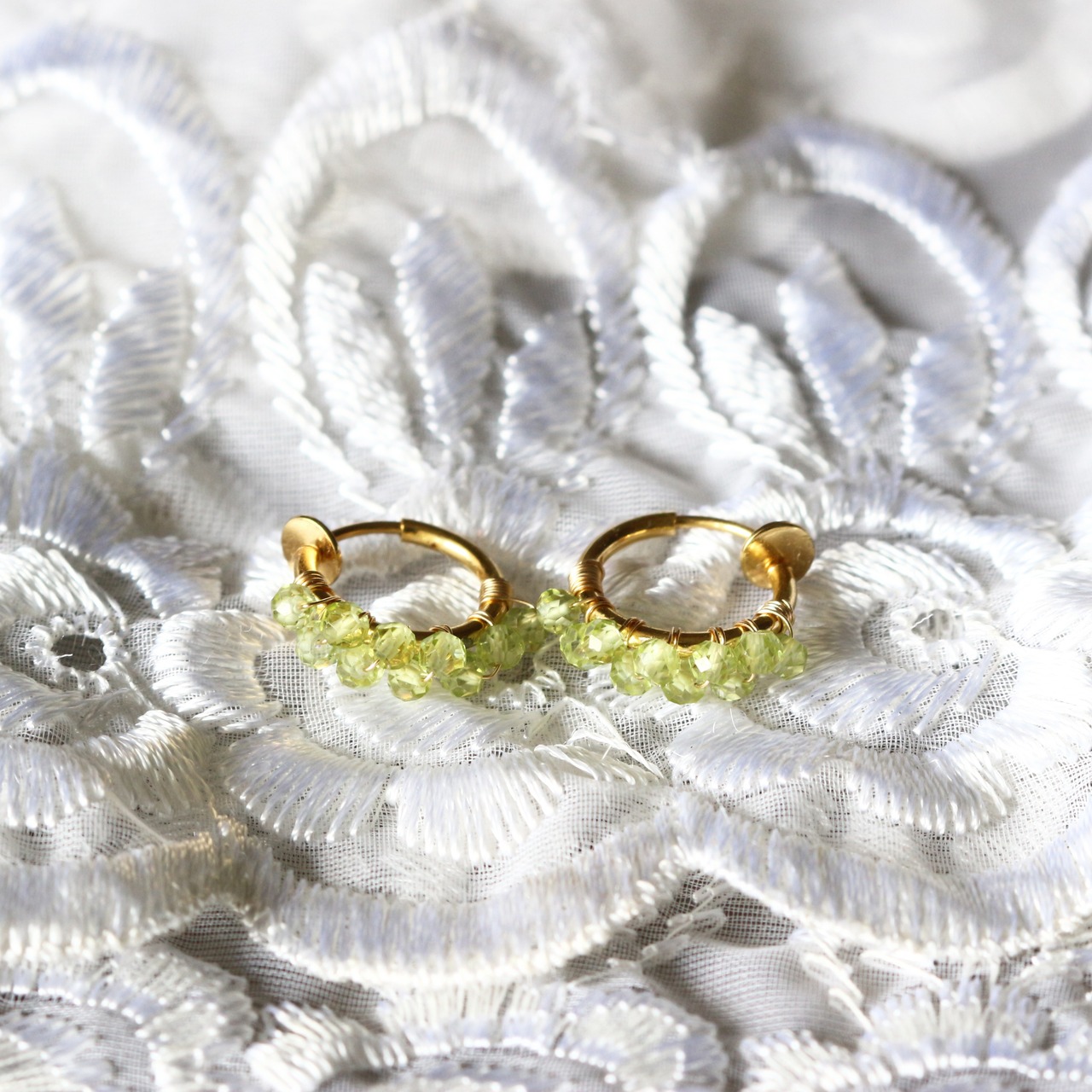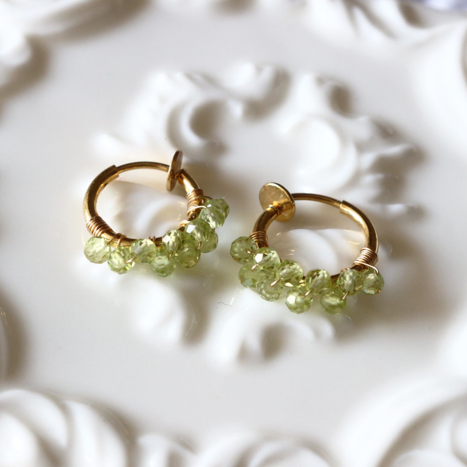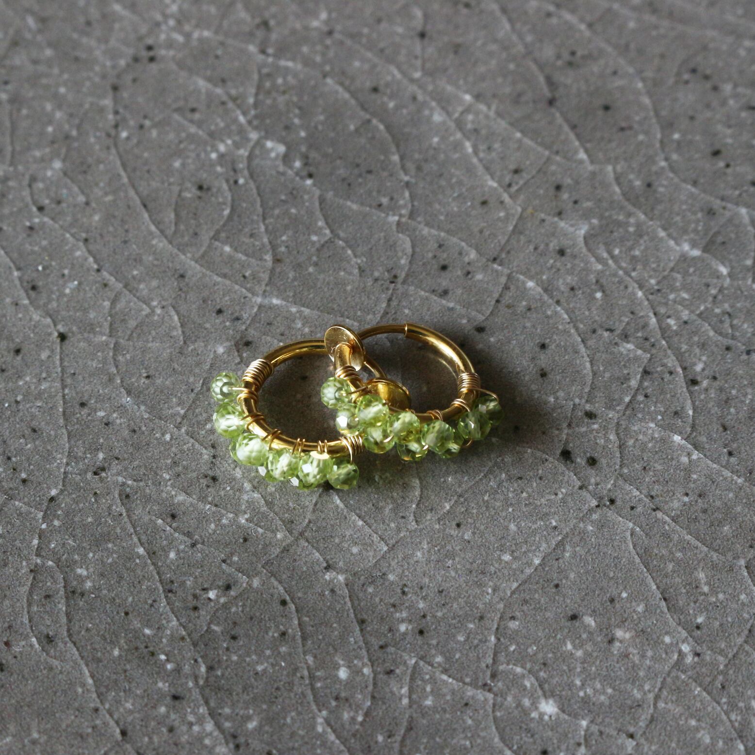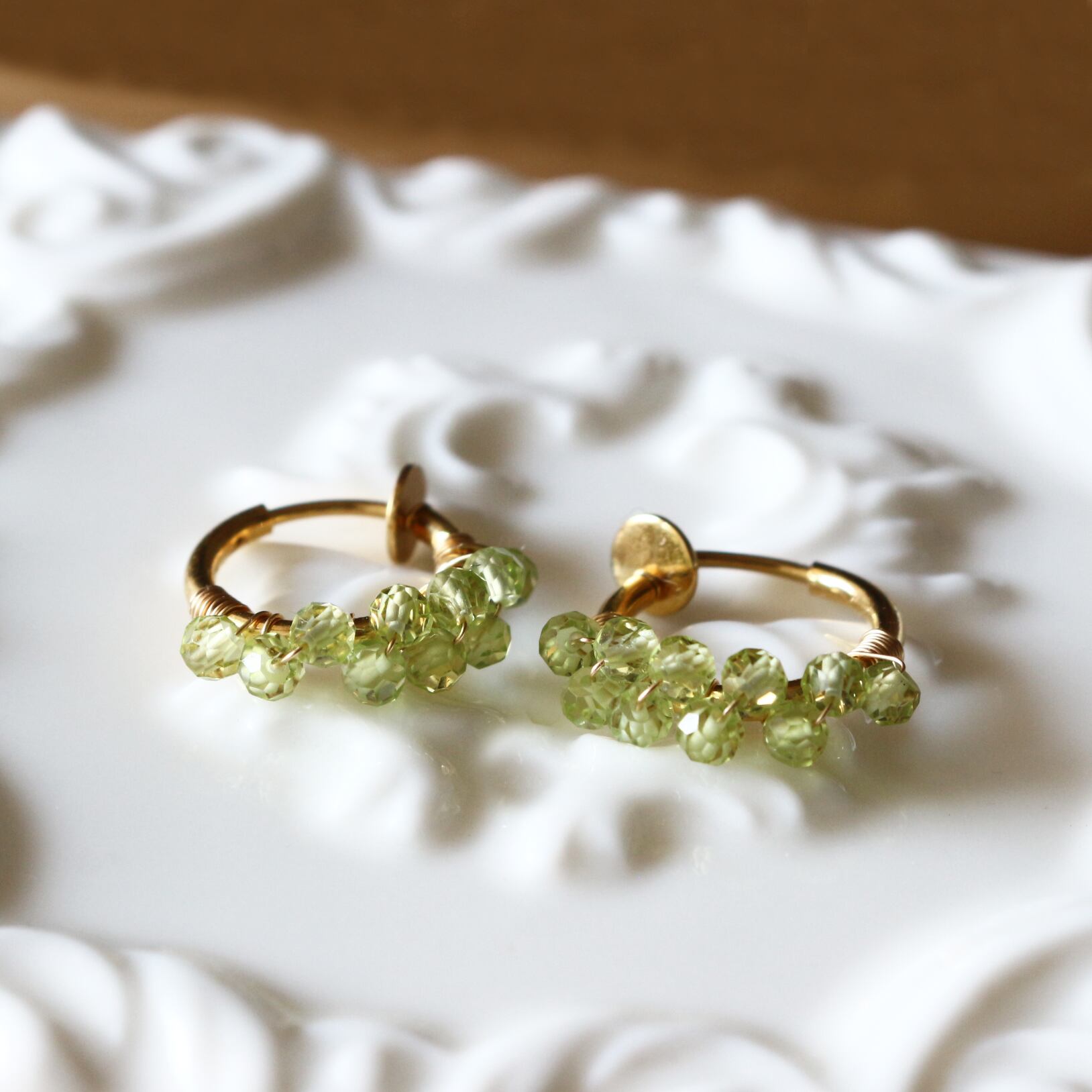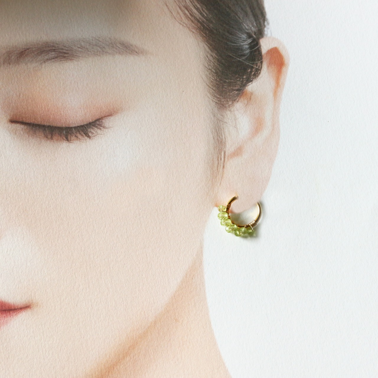 爽やかにきらめくグリーンの小粒たちをぎゅっと集めたフープイヤリング!