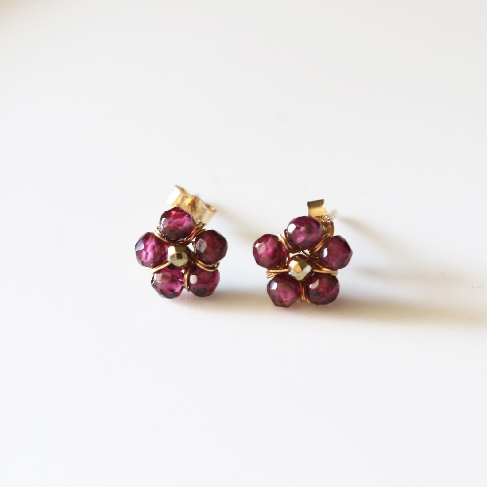 ーーーーーーーーーーーーーーーーーーーーーーーーーーーーーーーーーーーーーーーーーーーーーーーーーーーーーーーーーーーーーーーーーーーーーーーーーーーーK14gf K14GF ゴールドフィルド 天然石 ジュエリー アクセサリー ピアス スタッドピアス ハンドメイド ギフト 1月誕生石 ガーネット ロードライトガーネット 極小 プチギフト デイリー フォーマル シンプル 小粒 大人可愛い エレガント ワイン色 ボルドー 赤紫 ヘマタイト 小花 ミニマム 小さな花