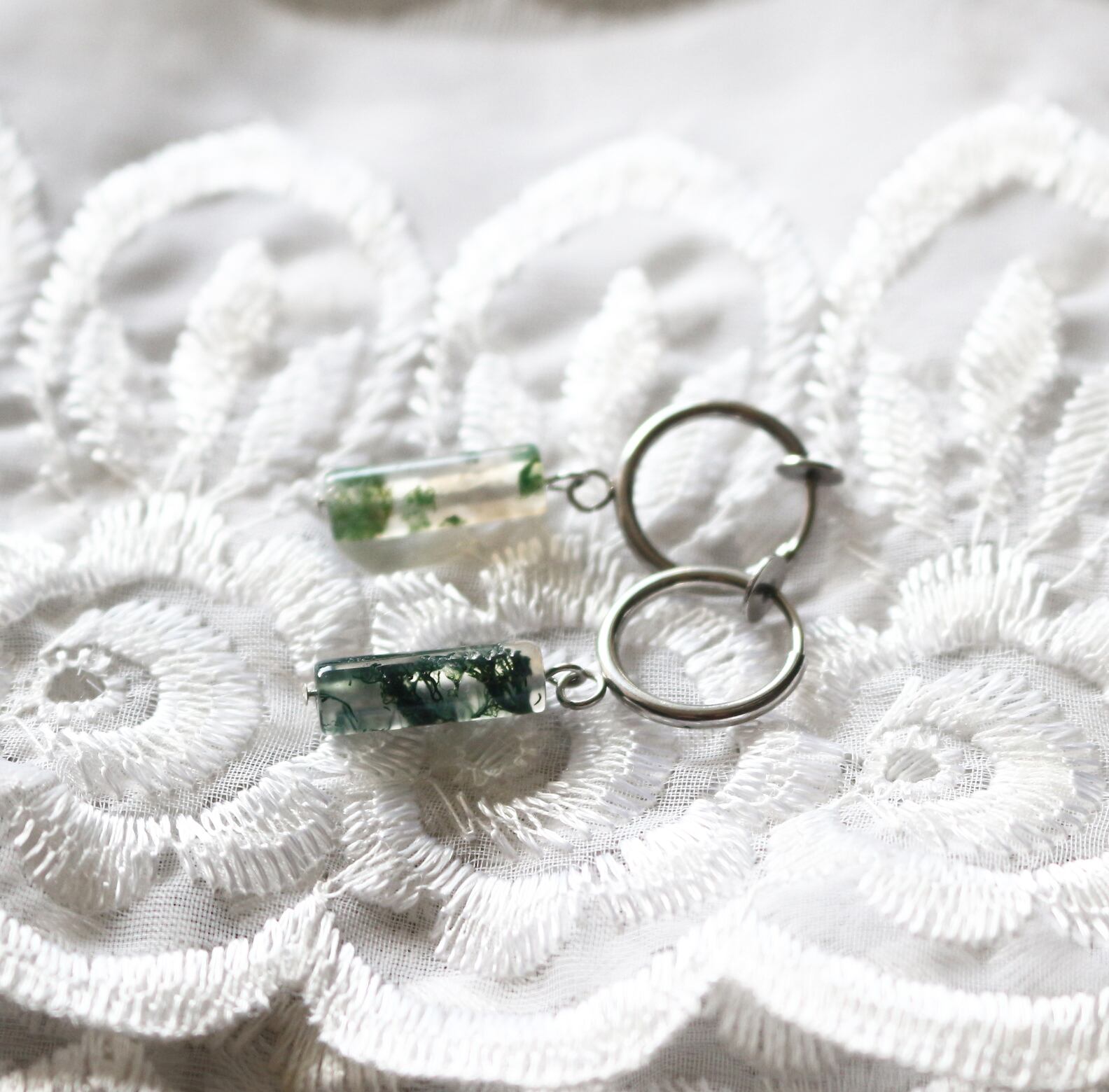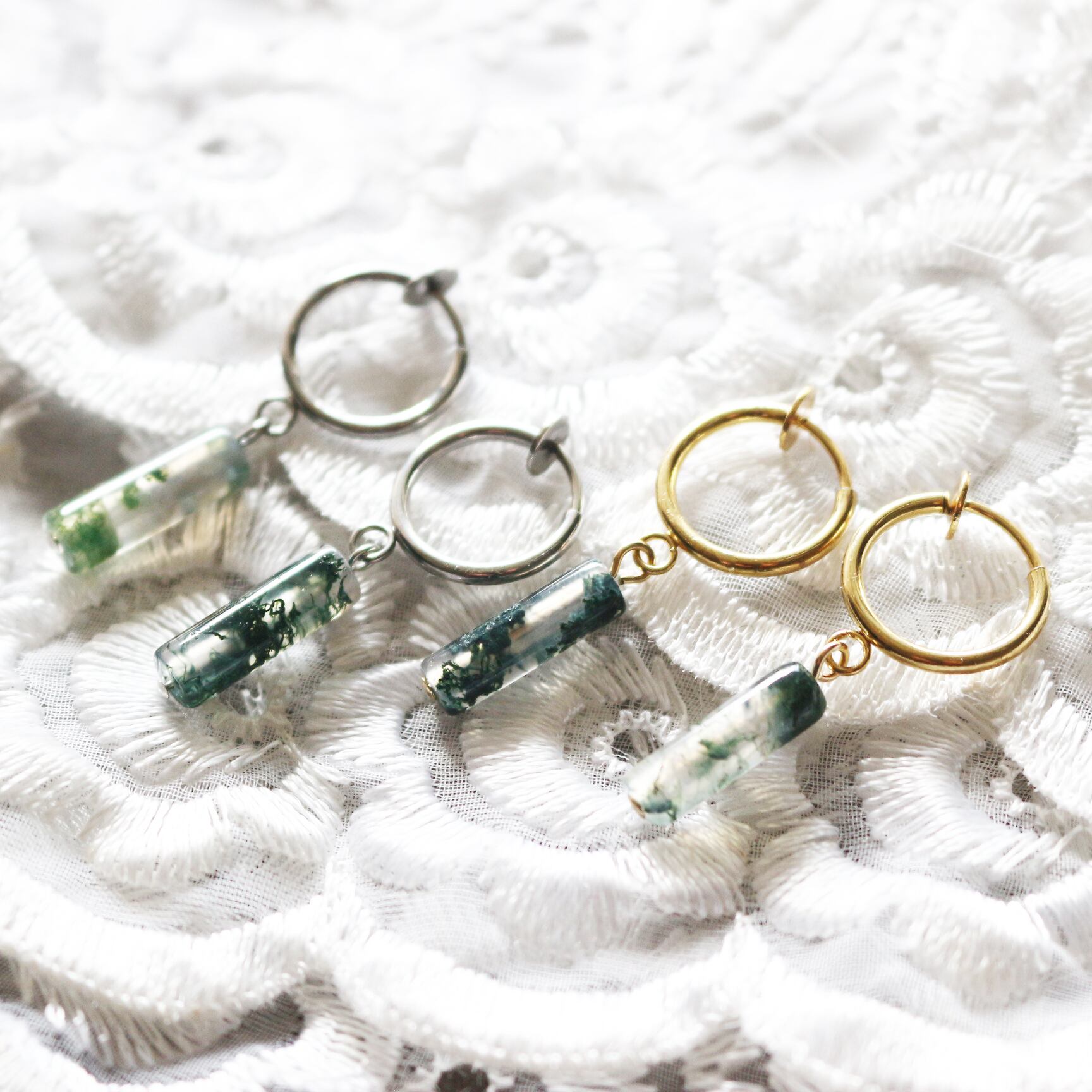 SVカラー ステンレス フープ フープイヤリング イヤリング 天然石 ジュエリー アクセサリー カラーストーン ハンドメイド ギフト 夏色 初夏 モスグリーン モスアゲート シンプル 一粒 スタイリッシュ クール 夏ギフト プレゼント デイリー