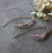 濃淡のあるピンクトルマリンの中から、優しく淡いピンクの小粒選び、並べてみました。
