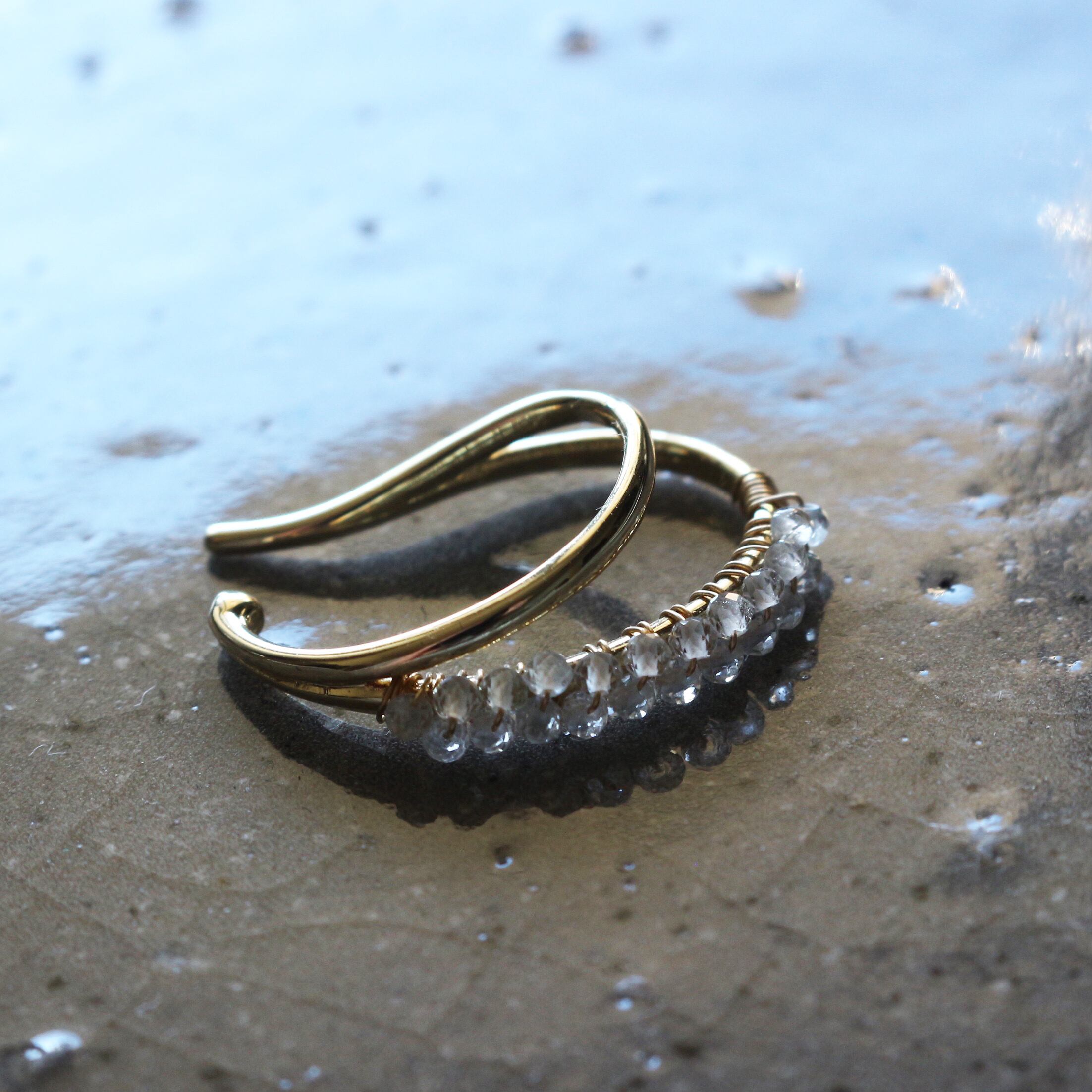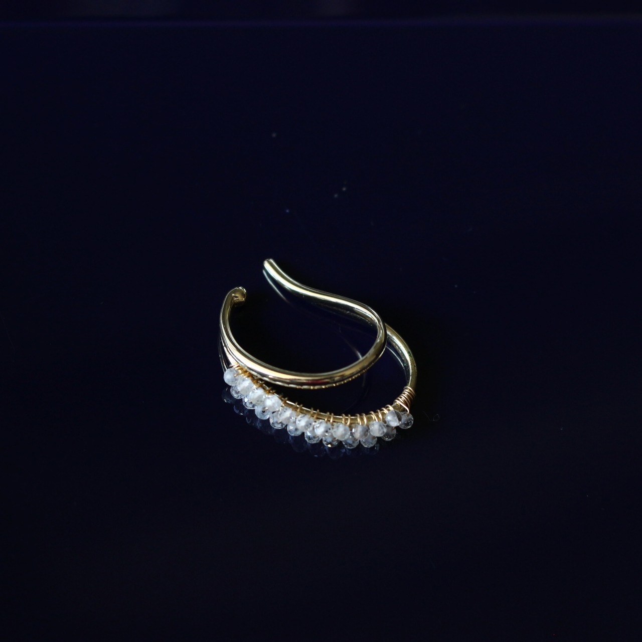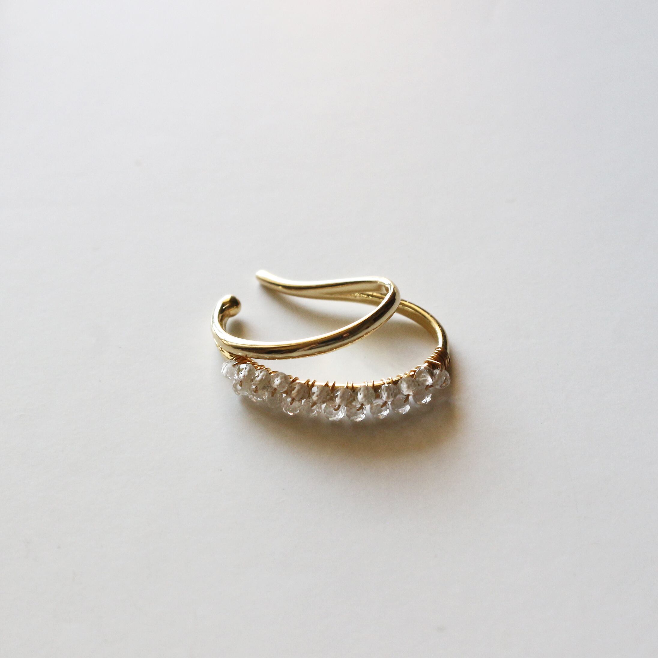 ダブルループのイヤーカフに、極小ホワイトトパーズをギュッと巻きつけた、普段使いはもちろん、お出かけにもぴったり!アクセントとして活用して頂けそうです。