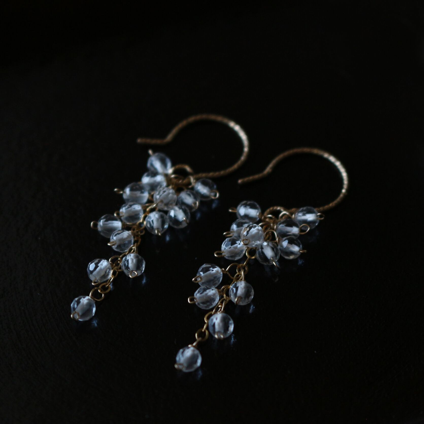 小粒をたっぷり集めシャラシャラと揺れるピアス、キラキラと動くたびに耳元で輝きます。