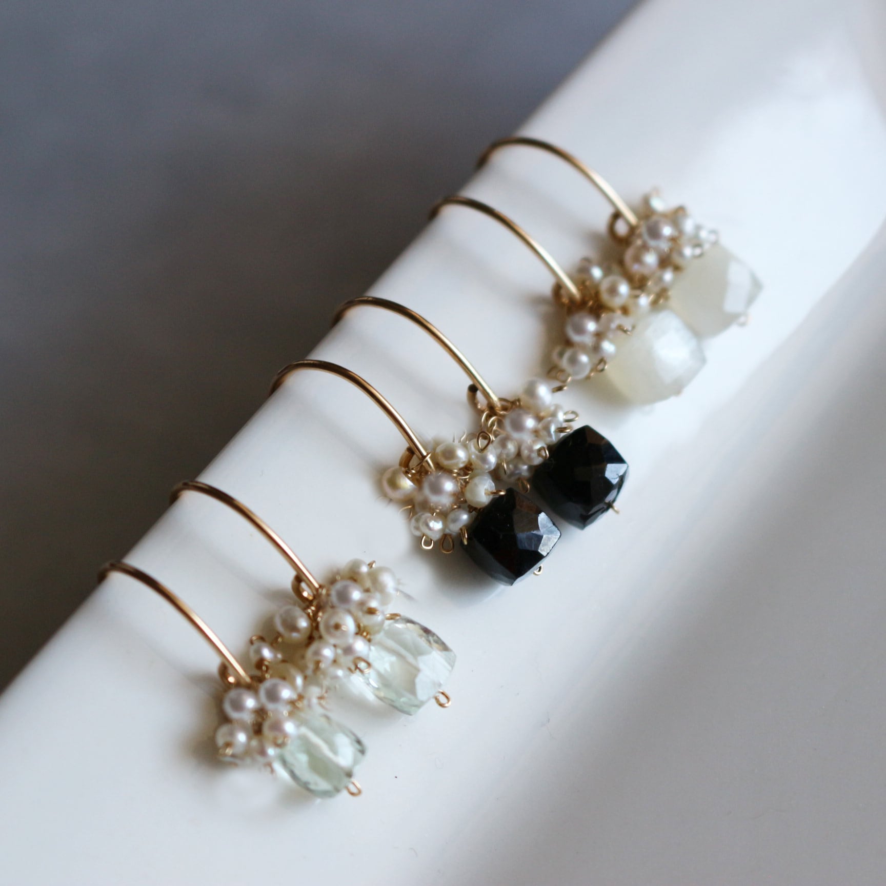 極小のベビーパールをたっぷり使ってしゅわしゅわの泡に見立てた遊び心ありのピアスです!