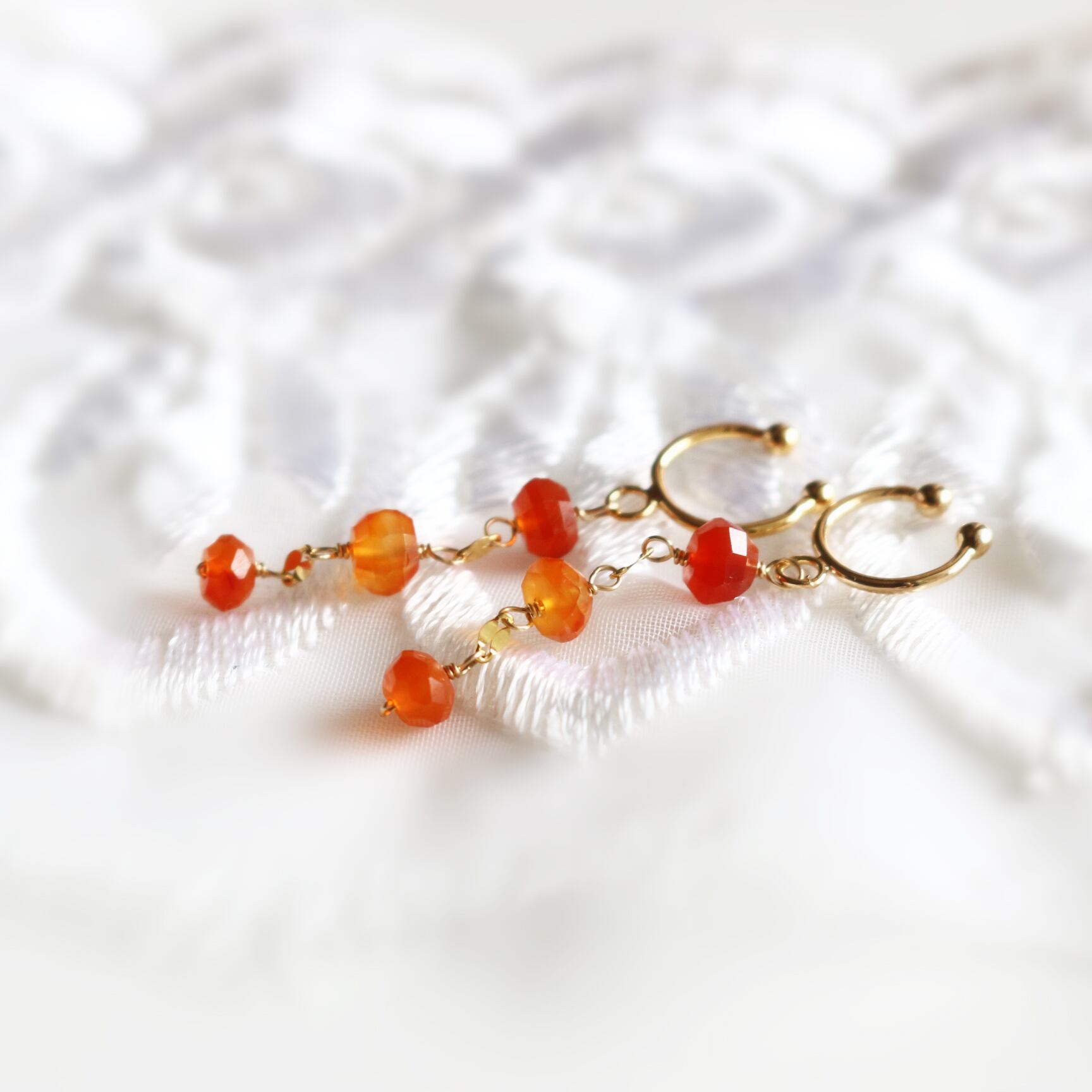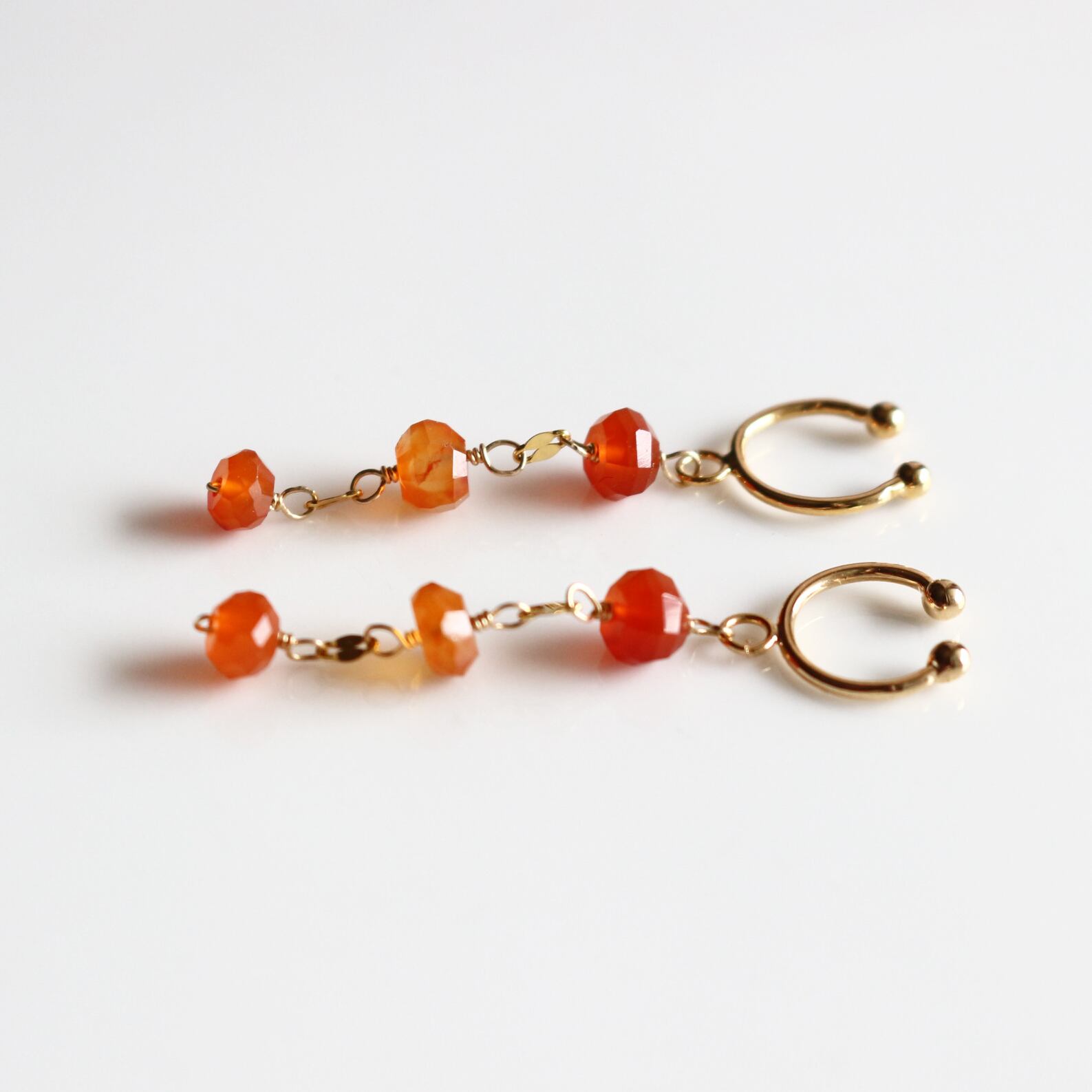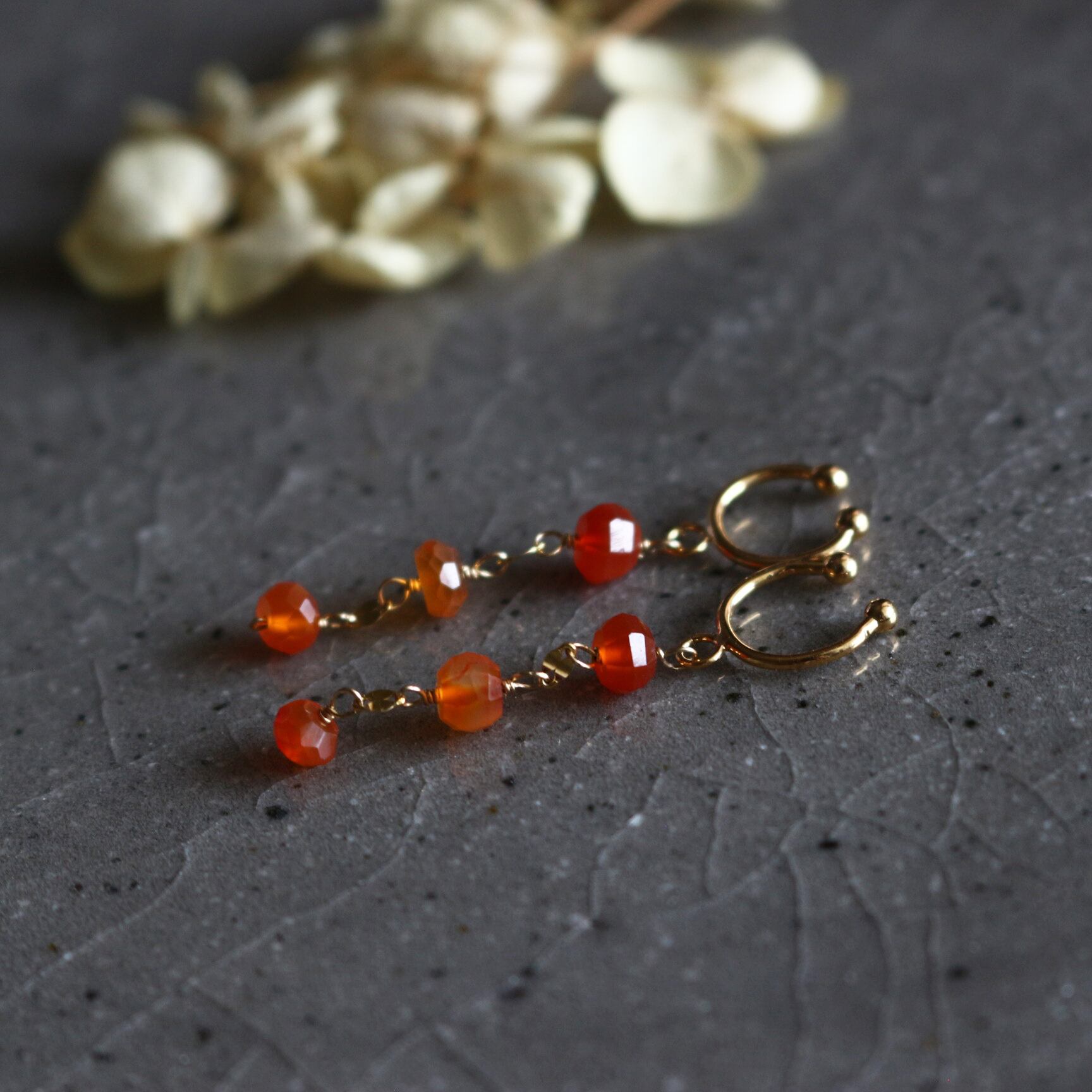 3粒 シンプル 天然石 ジュエリー アクセサリー カラーストーン イヤリング クリップ クリップイヤリング ハンドメイド ギフト プレゼント カーネリアン 7月誕生石 ビタミンカラー オレンジ タンジェリン 濃厚 高品質 上品 エレガント 可愛い ご褒美 デイリー 大人可愛い